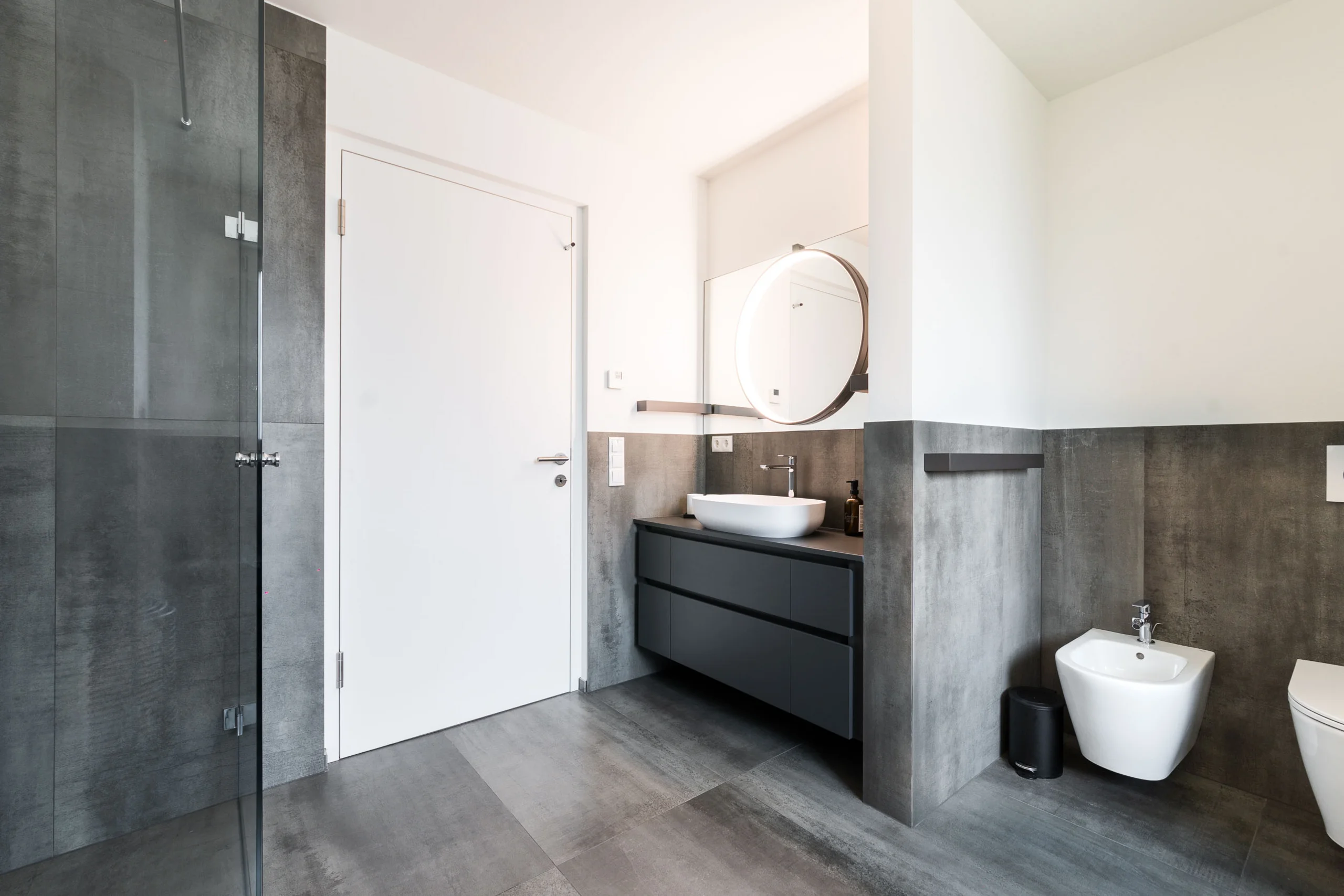 Dieses moderne Appartement in Ehrenburg strahlt Gemütlichkeit und Eleganz aus. Die schlichte Farbpalette aus Grau, Braun und Schwarz schafft ein harmonisches Gesamtbild. Sämtliche Räumlichkeiten wurden mit viel Liebe zum Detail geplant und eingerichtet – von der Küche über die Badezimmer bis hin zu den Möbelstücken. Es ist ein Zuhause, das ganz einfach zum Wohlfühlen einlädt.