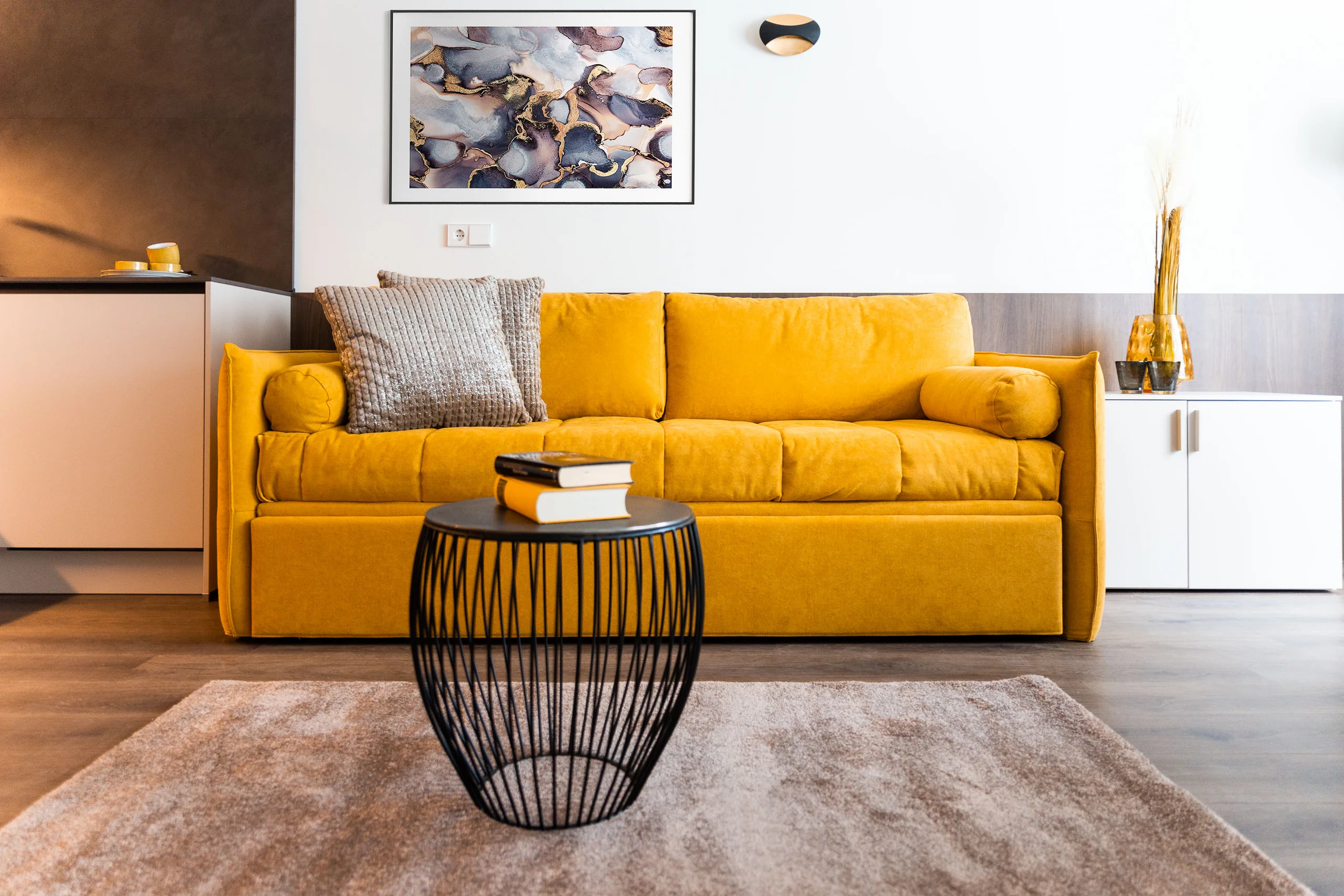 Dieses Penthouse ist mehr als nur eine Wohnung – es ist ein ganz persönlicher Rückzugsort. Mit viel Liebe zum Detail wurde hier ein Zuhause geschaffen, das genau auf die Bedürfnisse unserer Kunden zugeschnitten ist. Die Einrichtung ist modern, aber trotzdem behaglich und verleiht der klassischen Stadtwohnung eine zeitgemäße Note. Jedes Detail fügt sich nahtlos in das durchdachte Konzept ein.